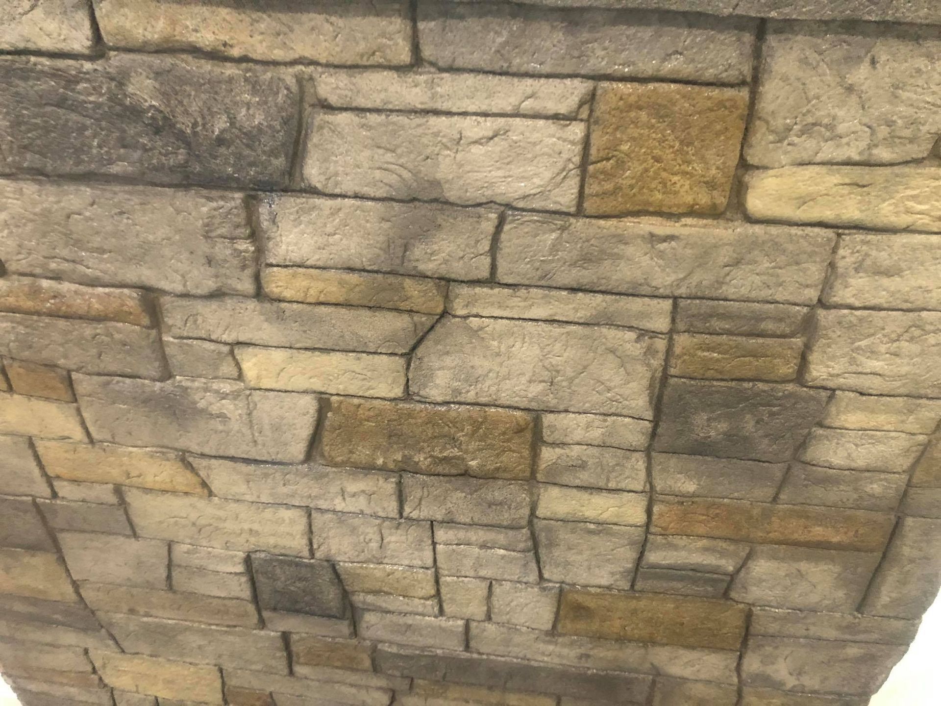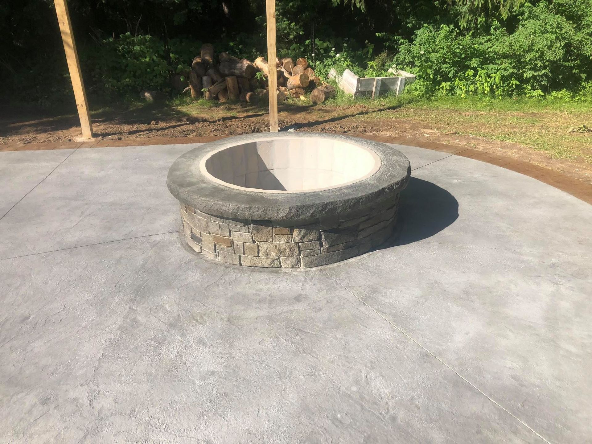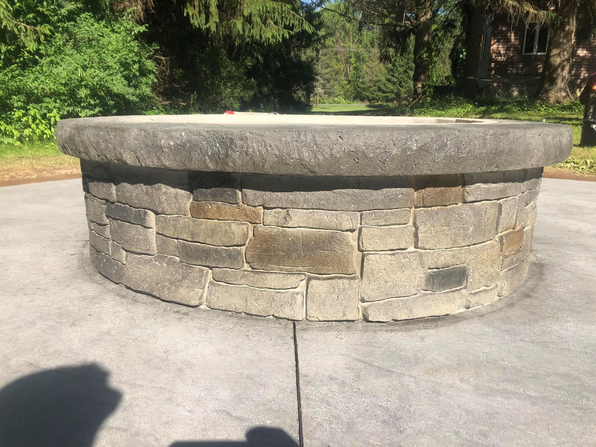 Stacked stone GFRC Concrete gas fire pit just awaiting clients choice of fire glass to finish it off