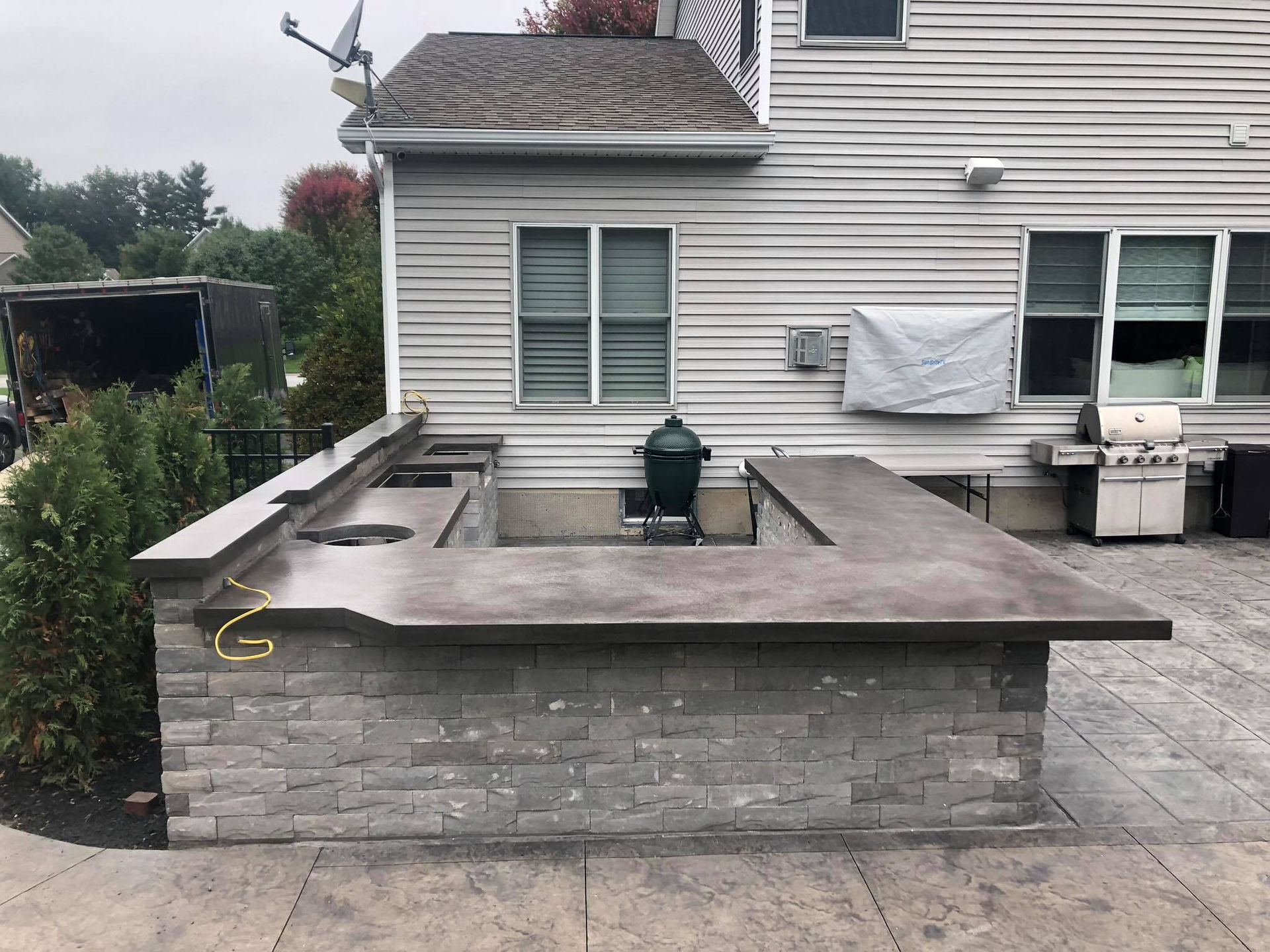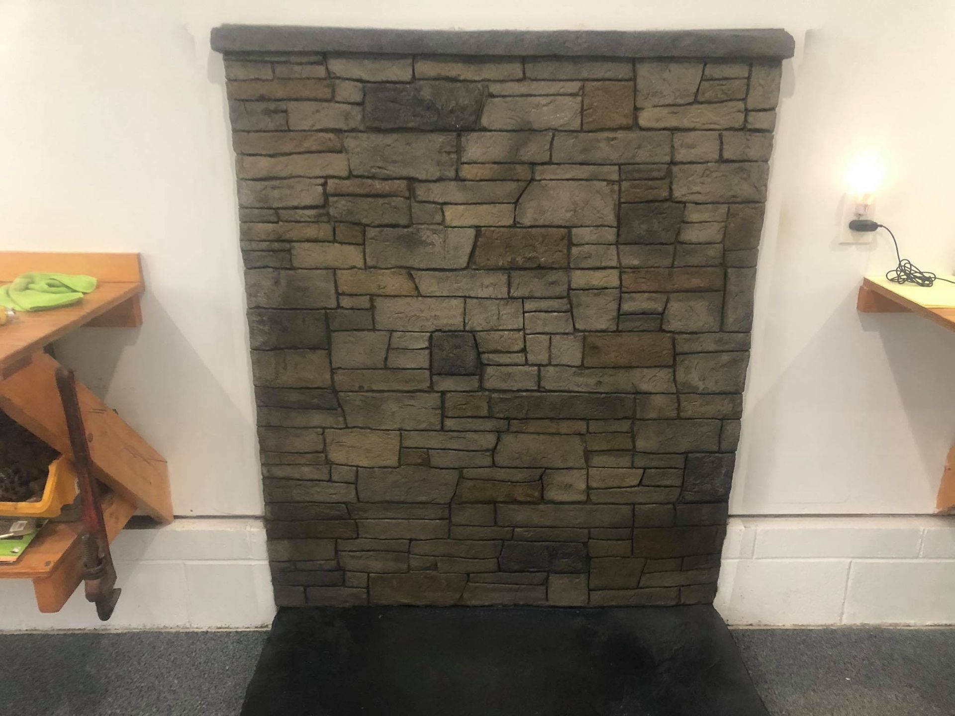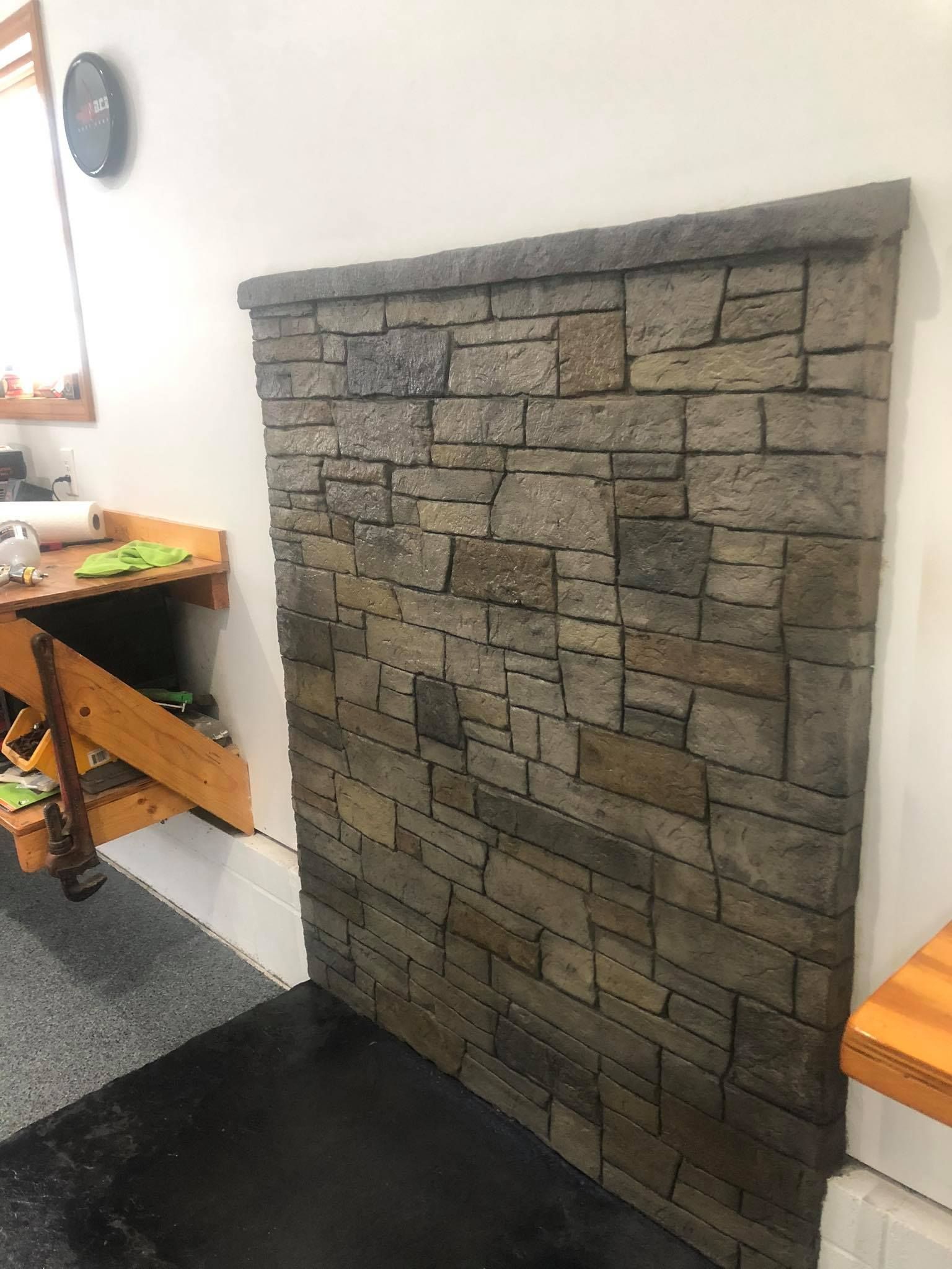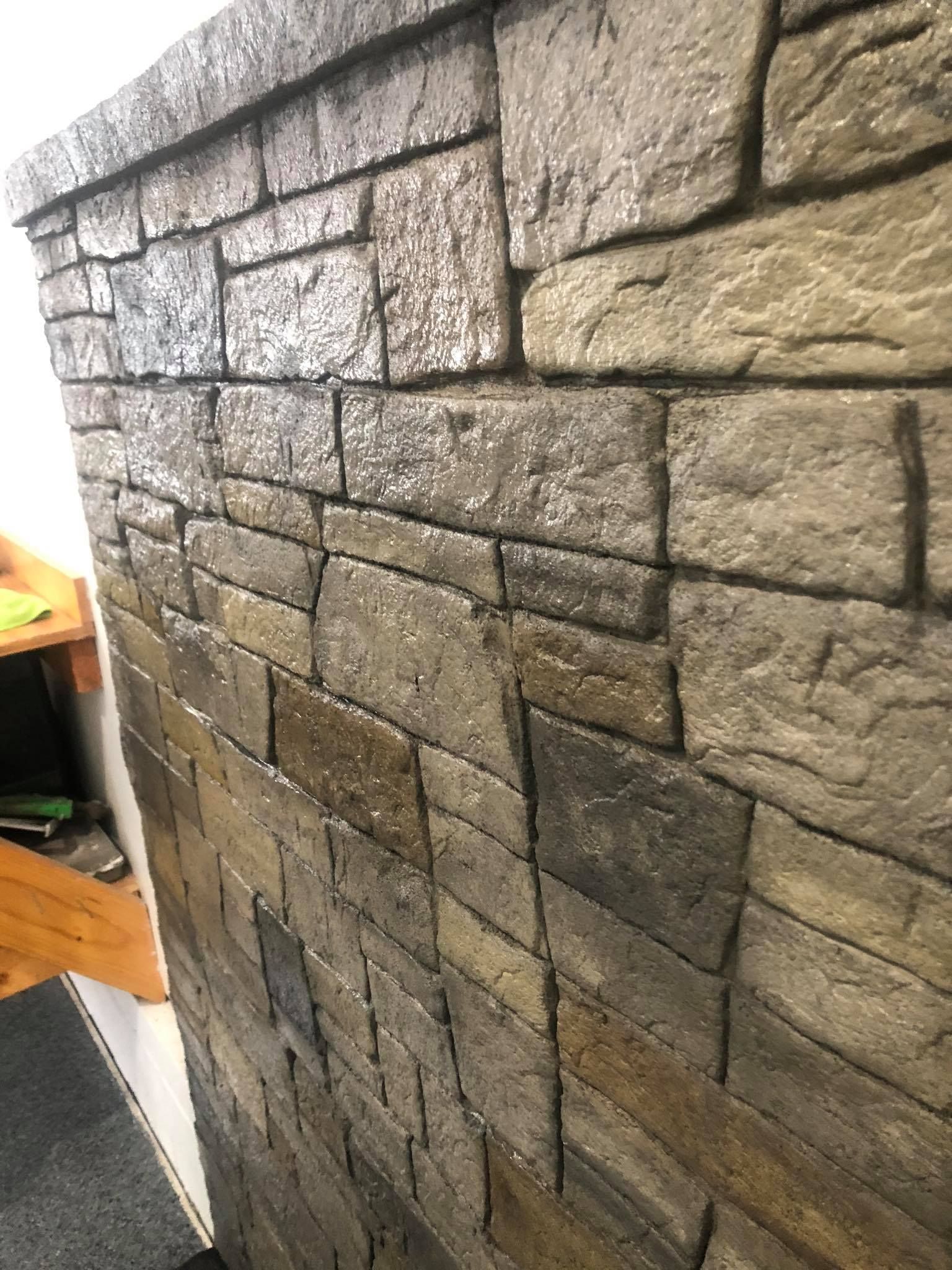 Stacked stone GFRC Concrete gas fire pit just awaiting clients choice of fire glass to finish it off